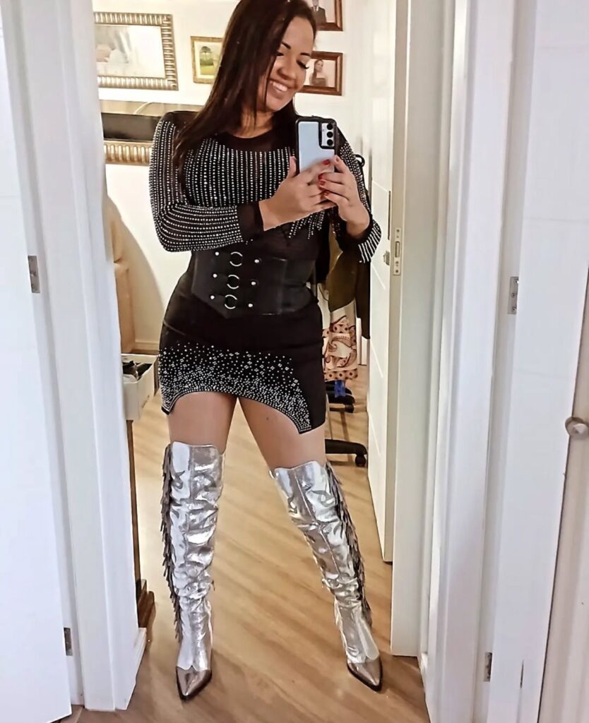 A relação com a música começou de pequena por influência do pai que gostava muito de cantar música sertaneja, ela pegava uma escova de cabelo ou um frasco de