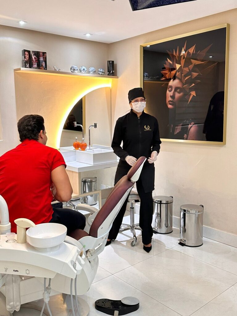 No atendimento ao cantor, a Dra. Kelly Cristina utilizou sua expertise em lentes de contato dentais para realizar a troca das antigas lentes. “Muitos de nossos clientes chegam à nossa clínica com lentes de contato que não os satisfazem. Nosso objetivo é corrigir esses tratamentos e proporcionar um sorriso que realmente atenda às expectativas dos pacientes,” explica a doutora. “No caso do Israel, realizamos apenas leves polimentos, respeitando a estrutura natural dos dentes.”