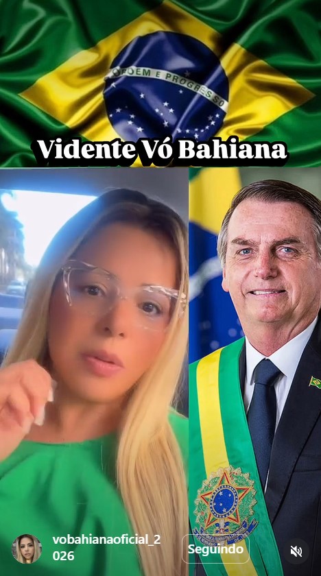Figura recorrente entre seguidores que buscam orientação espiritual, ela foi chamada para realizar uma visita em Brasília e poder ajudar Jair Bolsonaro em suas orações. Fotos dela em frente ao condomínio do ex-presidente foram vazadas, o que acabou a assustando, pois ela não sabia que estava sendo fotografada. Ao chegar ao hotel em Brasília, percebeu que havia um carro preto seguindo a vidente Vó Bahiana.