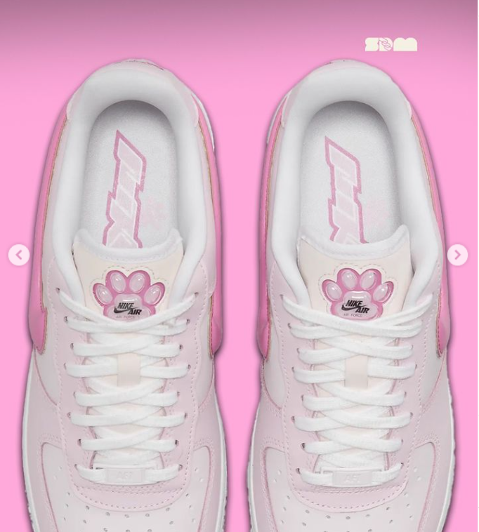 A icônica pegada de gato na língua e com tons em rosa traz um swoosh acolchoado em forma de patinha (🐾)!!!!!!