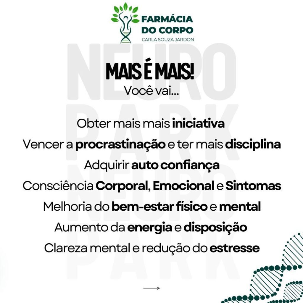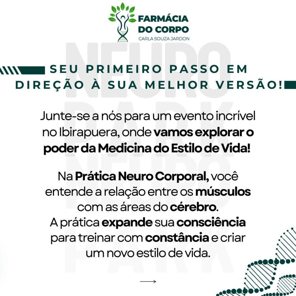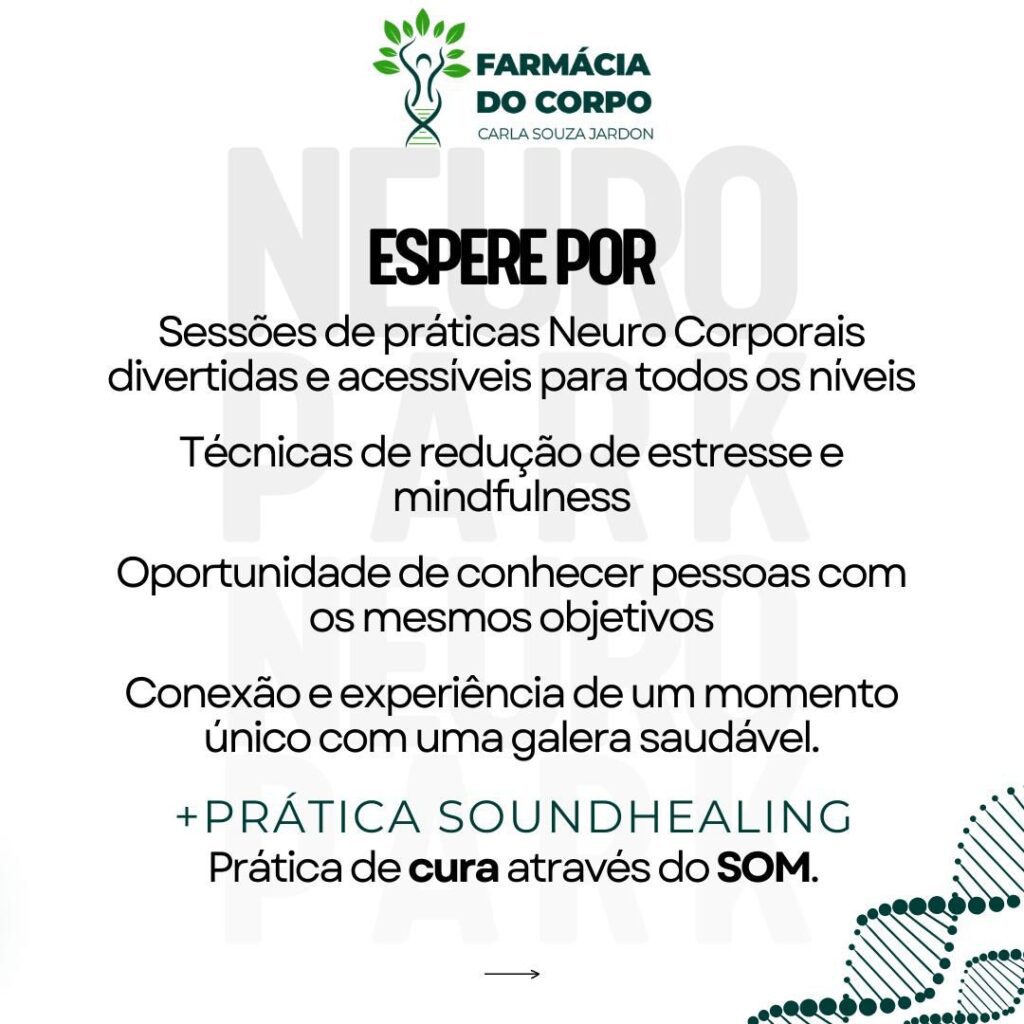 Com atividades que despertam a consciência corporal e emocional, o NeuroPark é um convite para descobrir o poder da neuroplasticidade – a capacidade do cérebro de se adaptar e crescer por meio de estímulos consistentes. Essa prática única promove mais energia, disciplina, clareza mental e redução do estresse, ajudando os participantes a dar o primeiro passo rumo à sua melhor versão.