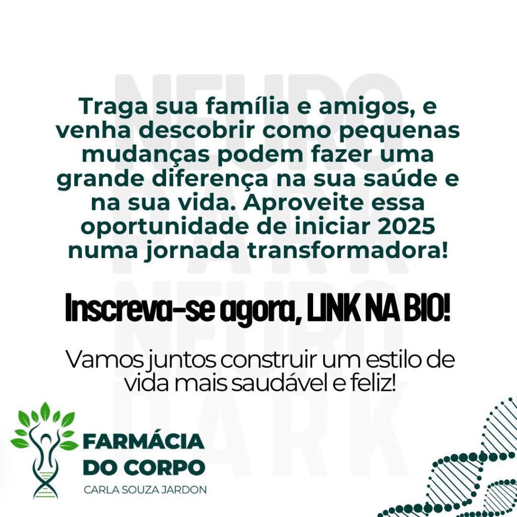 A Mentoria Farmácia do Corpo é um programa online e em grupo que visa ativar os principais pilares da saúde integral e funcional dos participantes, promovendo hábitos saudáveis e uma longevidade com qualidade.